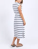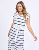 Step out in the Casey Stripe Dress with its flattering vee neckline, waist tie that hugs just right, and breezy midi length. Made from soft cotton, featuring a bold stripe. It’s comfy, playful, and ready to keep you feeling great wherever you go.
