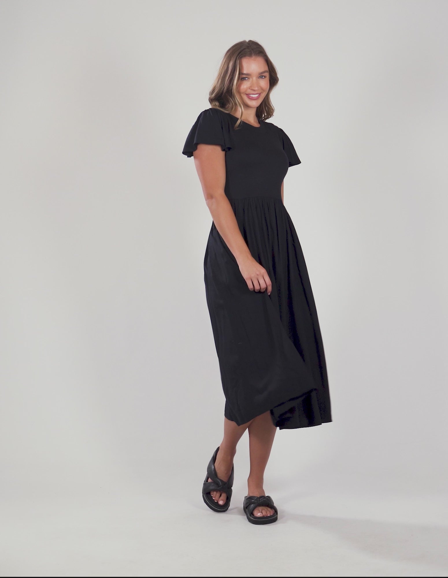 Effortless style with a perfect mix of textures. The Elle Dress features a ribbed cotton body that fits like a dream, paired with a flowy woven skirt and sleeves for comfortable movement. Midi length and crafted from soft cotton and viscose, it’s a standout piece for day or night.