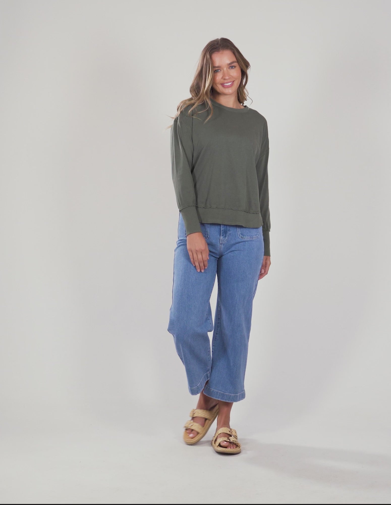 A new crew to the Foxwood range the Farrah Long Sleeve in 100% Fresh Pima Cotton features a classic crew neckline and raw edge detail. This relaxed fit jumper is an easy everyday wear.