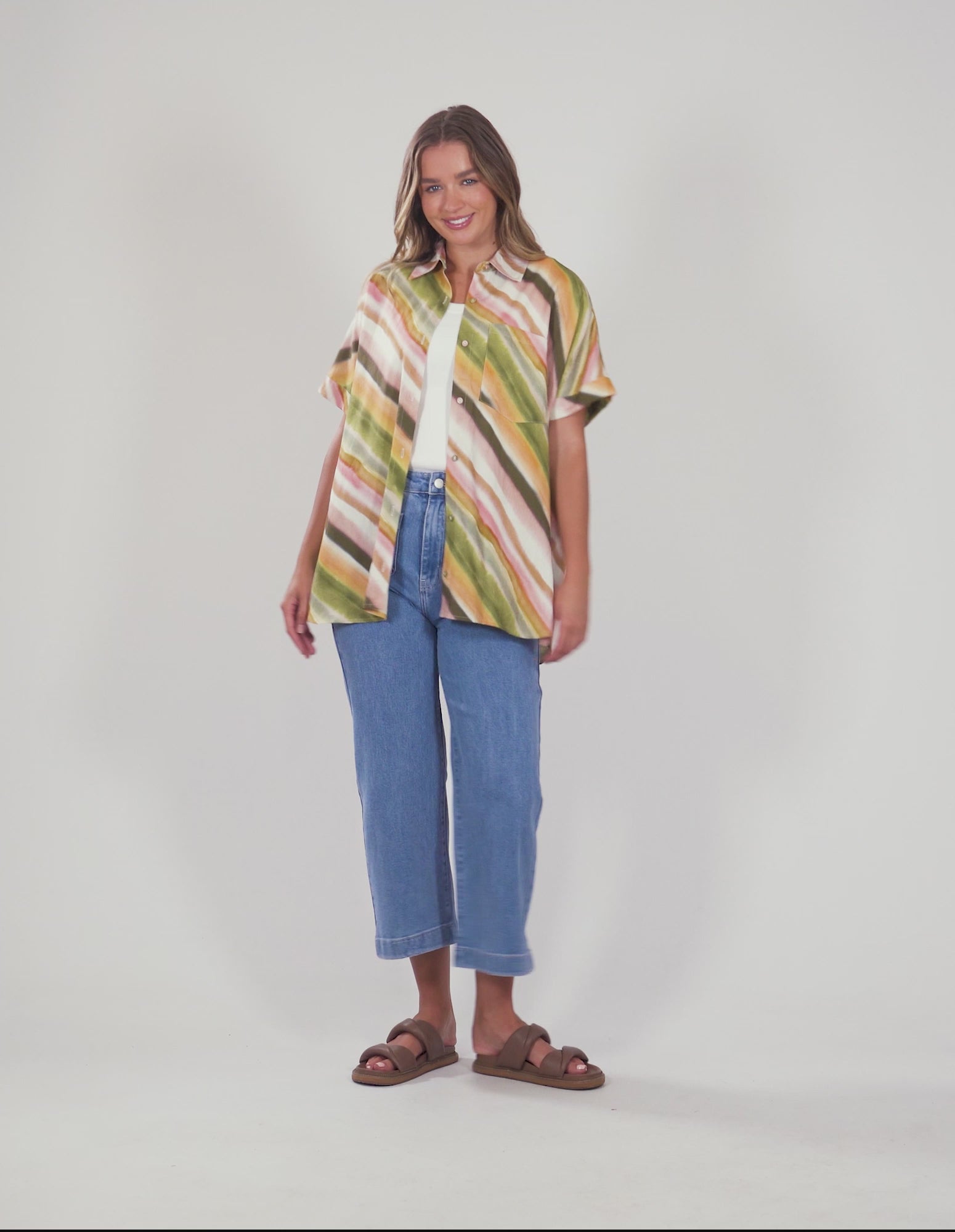 Brighten your wardrobe with the Horizon Shirt featuring a Foxwood exclusive all-over printed stripe. Made from a soft linen viscose blend, it has a front placket opening and handy chest pocket for effortless style and comfort. Perfect for adding a touch of print to your everyday look.