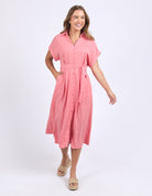 The ultimate in work to play chic, the Lucia Dress in luxe linen features tailored styling in the front button placket and cuffed sleeves and is a style that can be transformed from desk to dancefloor with a simple change of shoe.