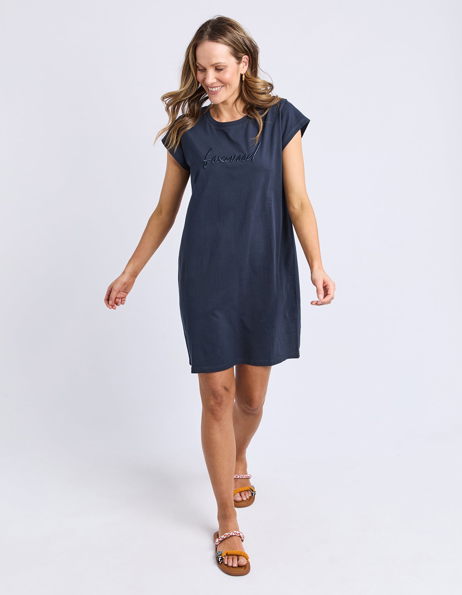 Signature Embroidery Tee Dress Dark Sapphire