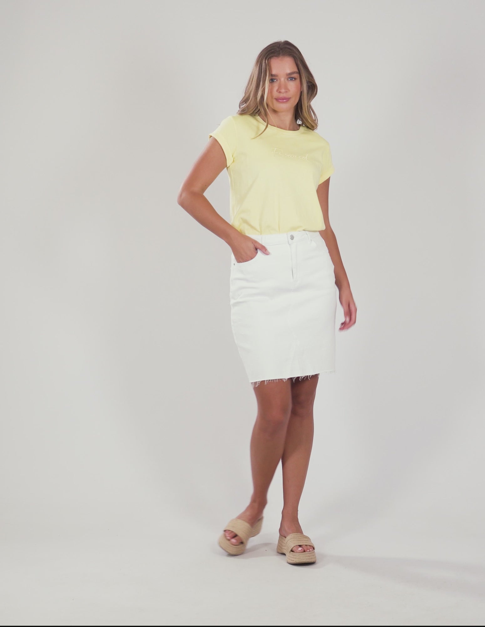 Our Signature Tee! For classic Foxwood style the artwork is embroidered and the t-shirt features a rolled cuff sleeve and curved hemline.
