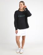 The Bling version of our Best Selling Simplified Crew. This crew is the perfect throw over for your everyday wardrobe. With its round neck, hi-lo hemline, side splits with raw edging & the classic Foxwood logo, you are going to want one in every colour. The Metallic Crew has a stunning lurex thread run through the Foxwood embroidery for that little bit 'extra'.