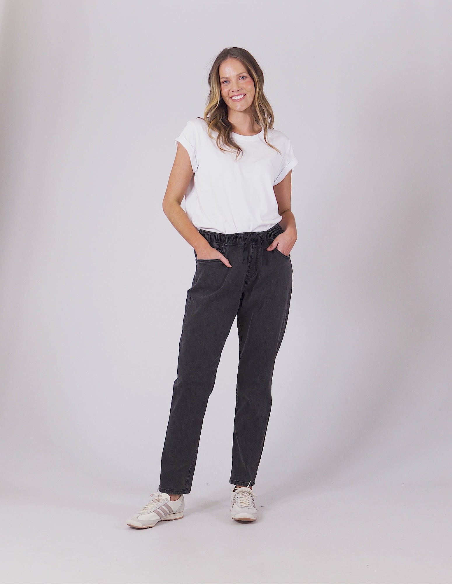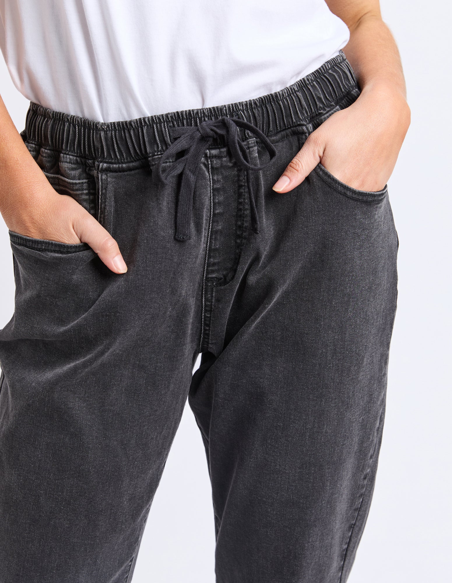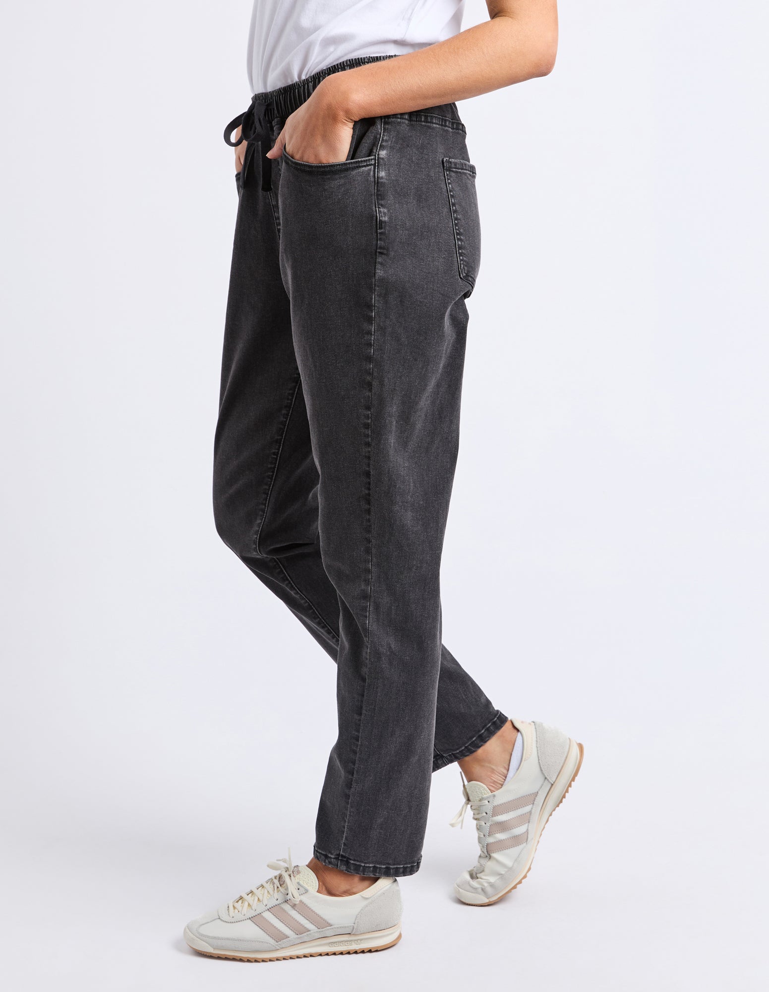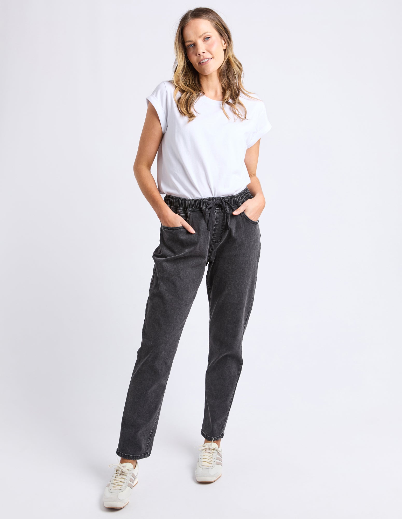 Looking for a jean with the comfort of a jogger? Look no further. The Juliette Denim Jogger looks like a classic 5 pocket jean but boast the stretch and elastication of a jogger ensuring comfort all day long! These mid-blue washed jeans are constructed from lightweight 11.5oz denim and a ready to wear!