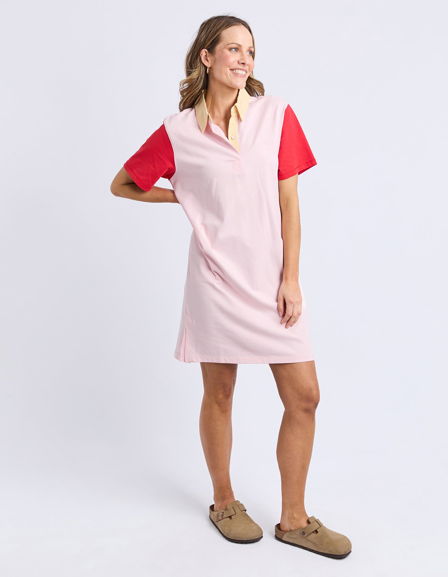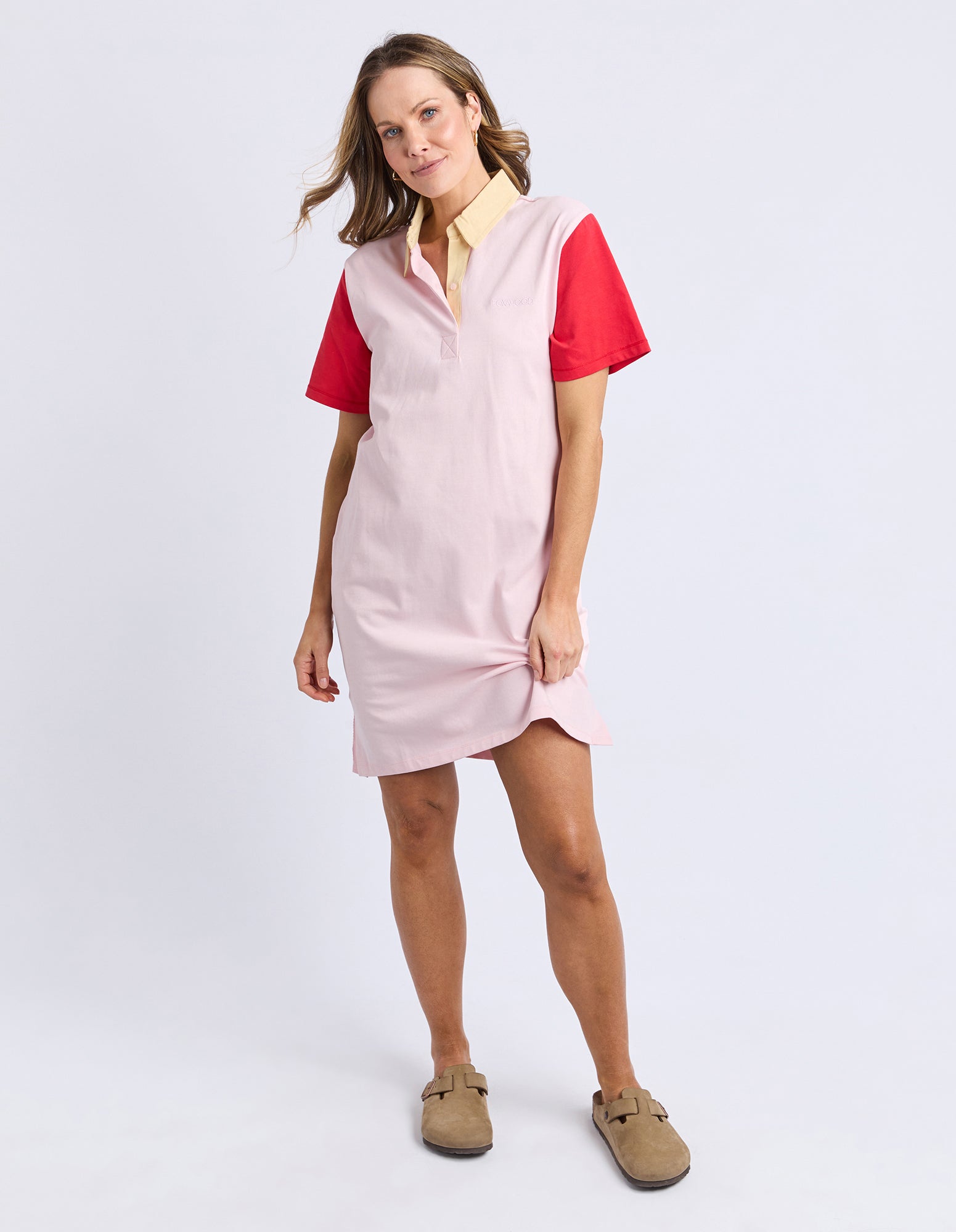 Elevate your casual wardrobe with the Mixed Rugby Dress . Featuring a classic collared neckline and bold contrasting sleeves, this dress blends sporty charm with feminine flair. Its relaxed fit ensures comfortable all-day wear, perfect for weekend outings or laid-back gatherings.