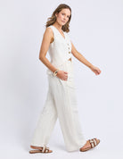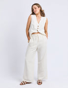 Designed for effortless style, the South Pant is made from breathable linen for ultimate comfort. These black slacks feature an elastic waist with a drawcord for a customizable fit, along with side pockets and subtle side detailing.