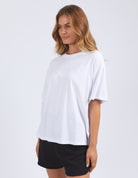 The Simplified Tee is the perfect throw over for your everyday wardrobe. With its round neck, hi-lo hemline, side splits with raw edging & the classic Foxwood logo, you are going to want one in every colour.