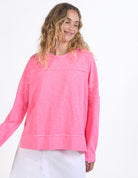 The Jayne Throw on Top is the perfect lightweight long sleeve to take you through the seasons. Cut from a comfy, cotton slub jersey this women's top features a crew neck, trendy exposed stitching and side split hi-low hem. Seriously versatile we know you'll be wearing this on repeat.