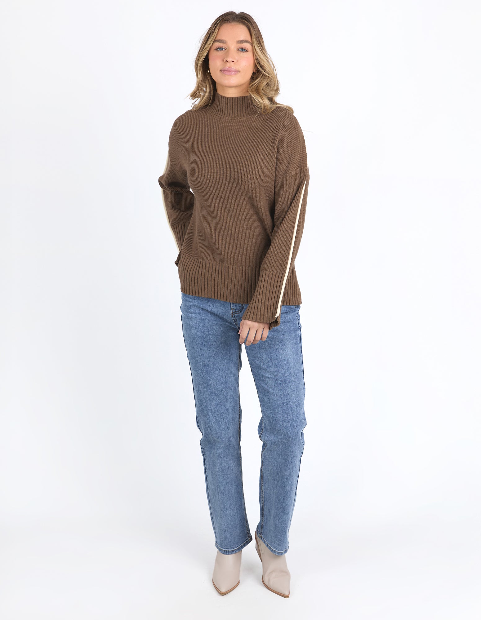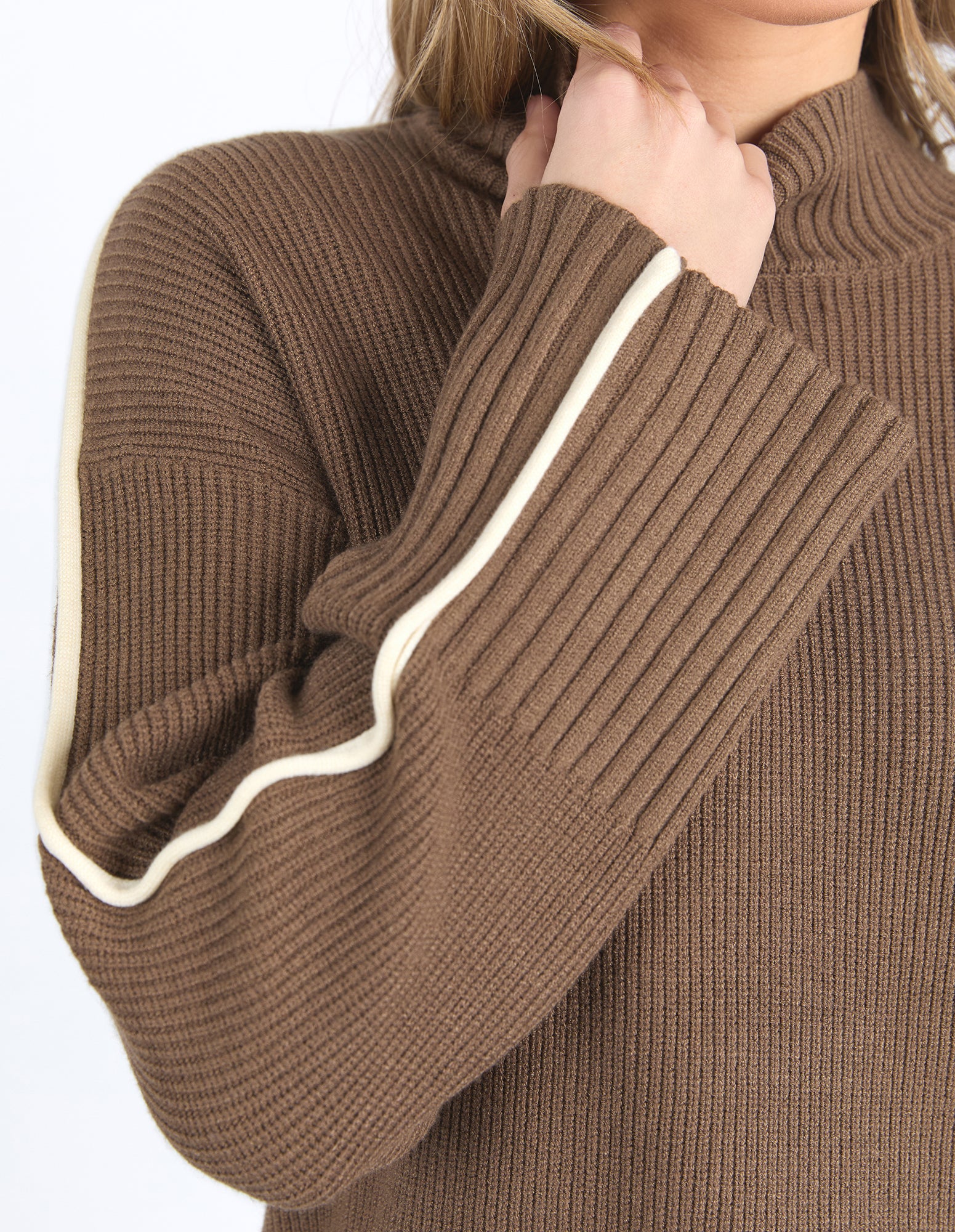 The Oliver Knit is here to elevate your casual look with style and comfort. Featuring a cozy mock neck and cool sleeve taping design, this relaxed fit knit is perfect for layering or wearing solo.