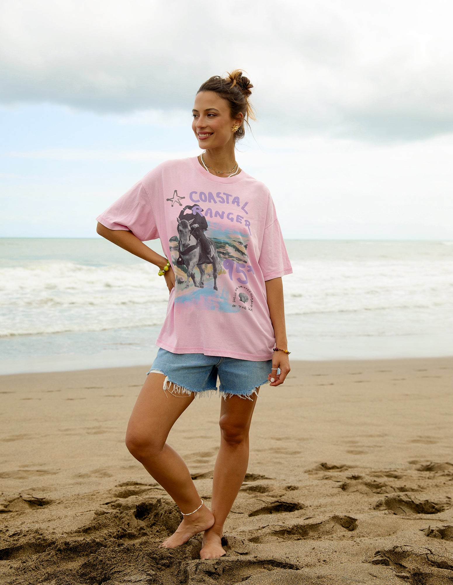 Ride the wave in the Coastal Ranger Tee. Inspired by salt air, wild hearts and the open road, this tee brings a touch of western soul to the sea. The washed cotton, vintage artwork and relaxed oversized fit give it that perfectly worn look you’ll want to live in. A love story of pure magic, straight from the coast. If you love the oversized look, stick with your regular size. If you are wanting a more relaxed fit, we recommend sizing down by 1 or 2 sizes.