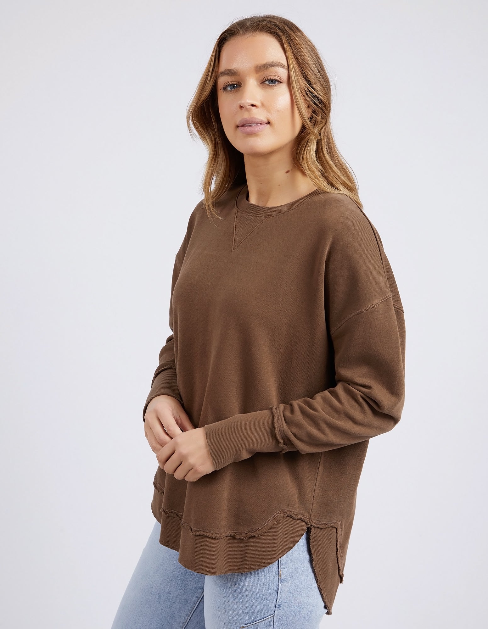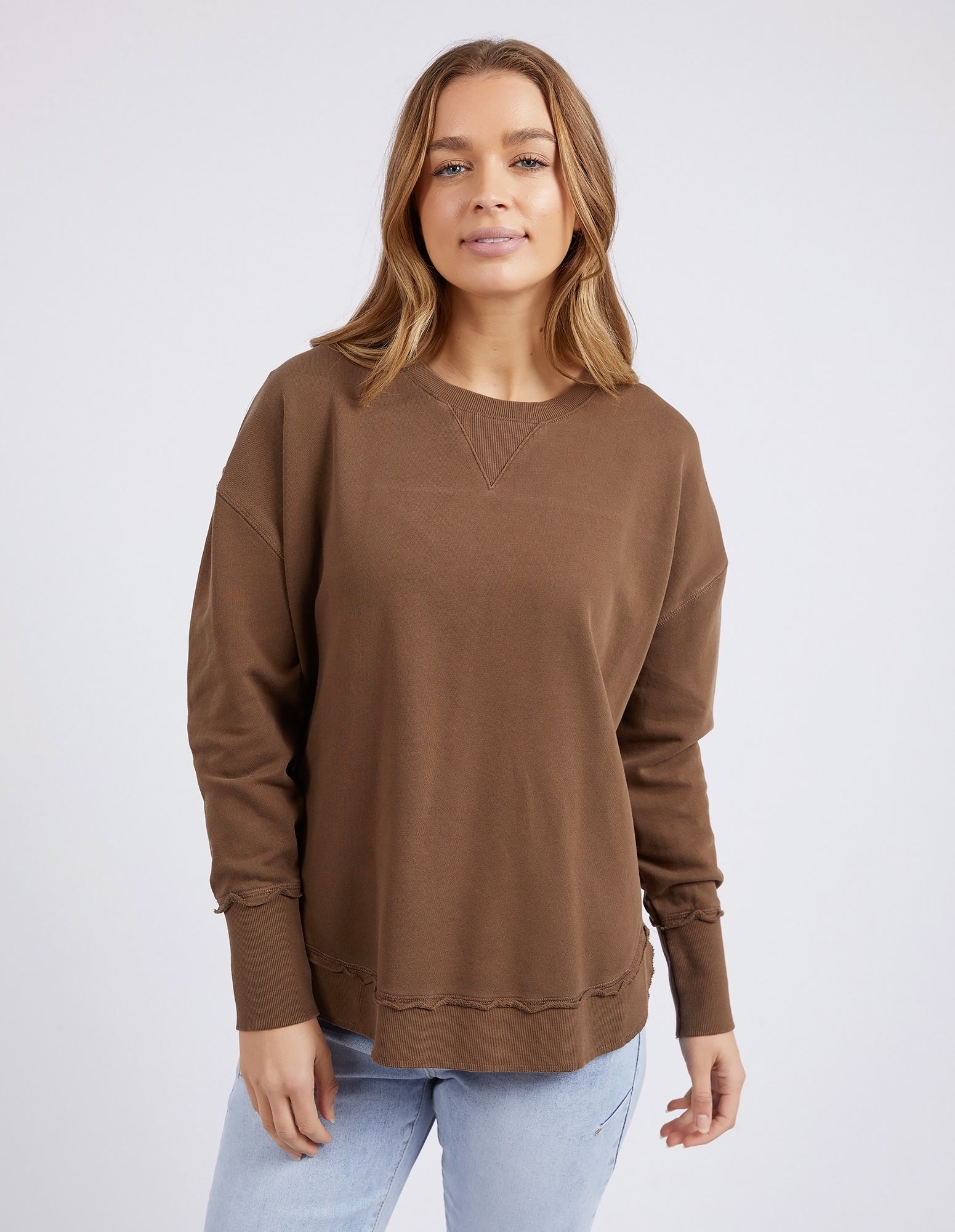 Comfortable, casual and 100% cotton. The Delilah Crew is the perfect addition to your everyday style! Featuring a crew neckline, curved hem and ribbed detailing, this relaxed fit, unbrushed fleece jumper will mix and match with all your wardrobe favourites