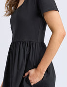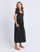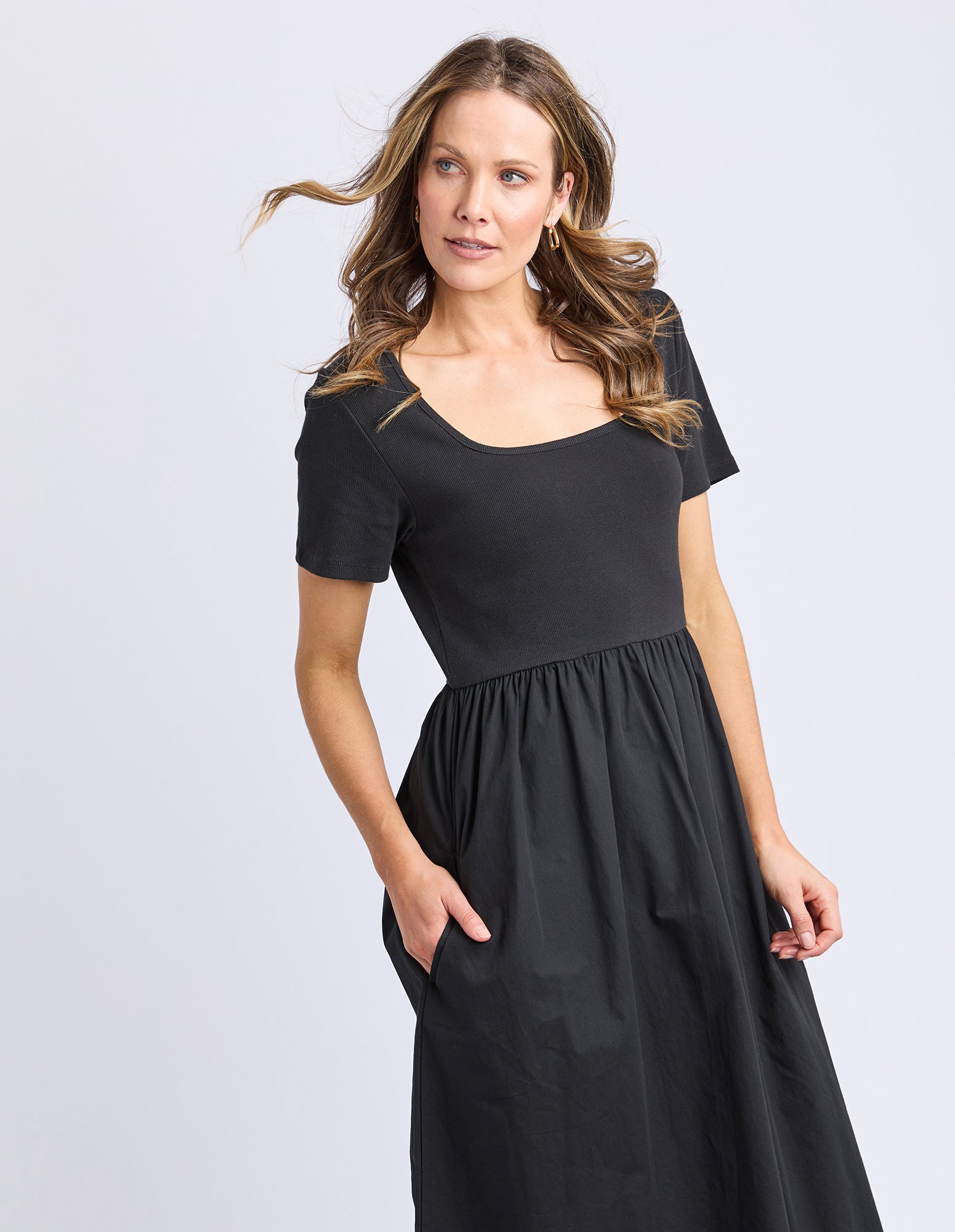 The perfect work to play dress for the season! Featuring a square neckline and ribbed top for the ultimate in flattering fits, we've added a fresh and lightweight cotton poplin skirt for style and a simple chic look.