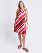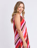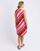 Bright and bold, the Guava Stripe Dress brings fresh colour and movement to your summer wardrobe. Featuring a striking vertical stripe design, this easy pull-on style has side pockets and a relaxed fit for comfort and ease. The soft, linen blend fabric is perfect for warm days and casual outings.