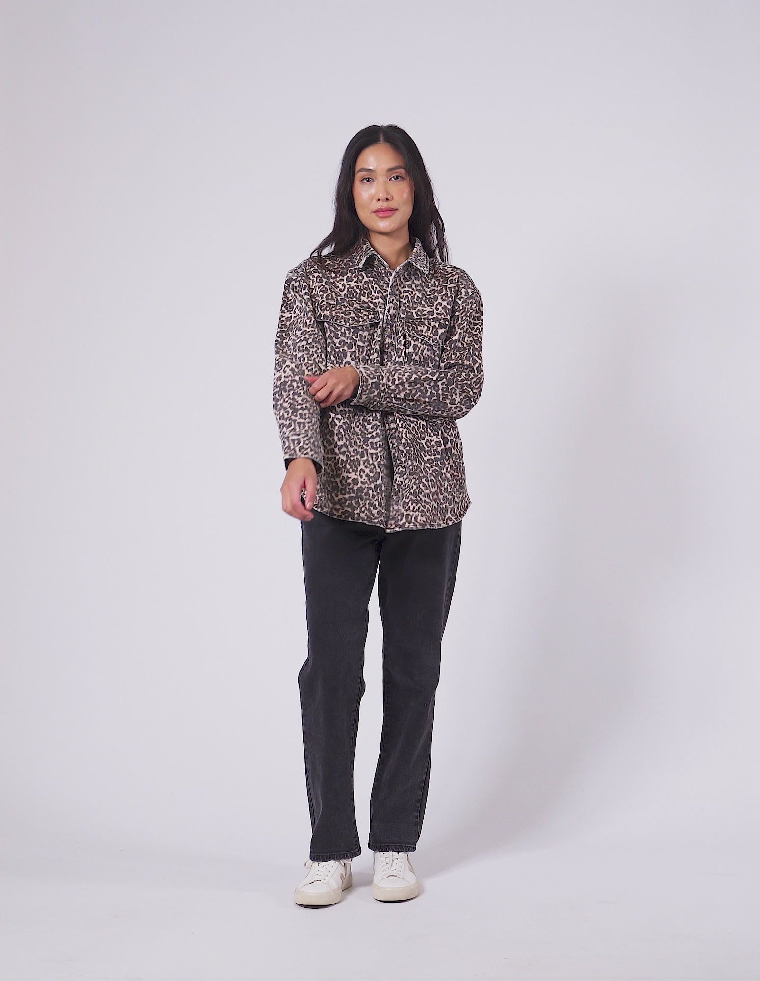 However you wear it, overshirt, buttoned up, or layered, the Leopard Denim Shirt is your new wardrobe wild card. With its fierce leopard print and laid-back fit, this shirt brings a bold twist to everyday styling. The lightweight denim feels effortless and the vintage-inspired details like metal snaps plus functional patch and side pockets make it as practical as it is statement making.