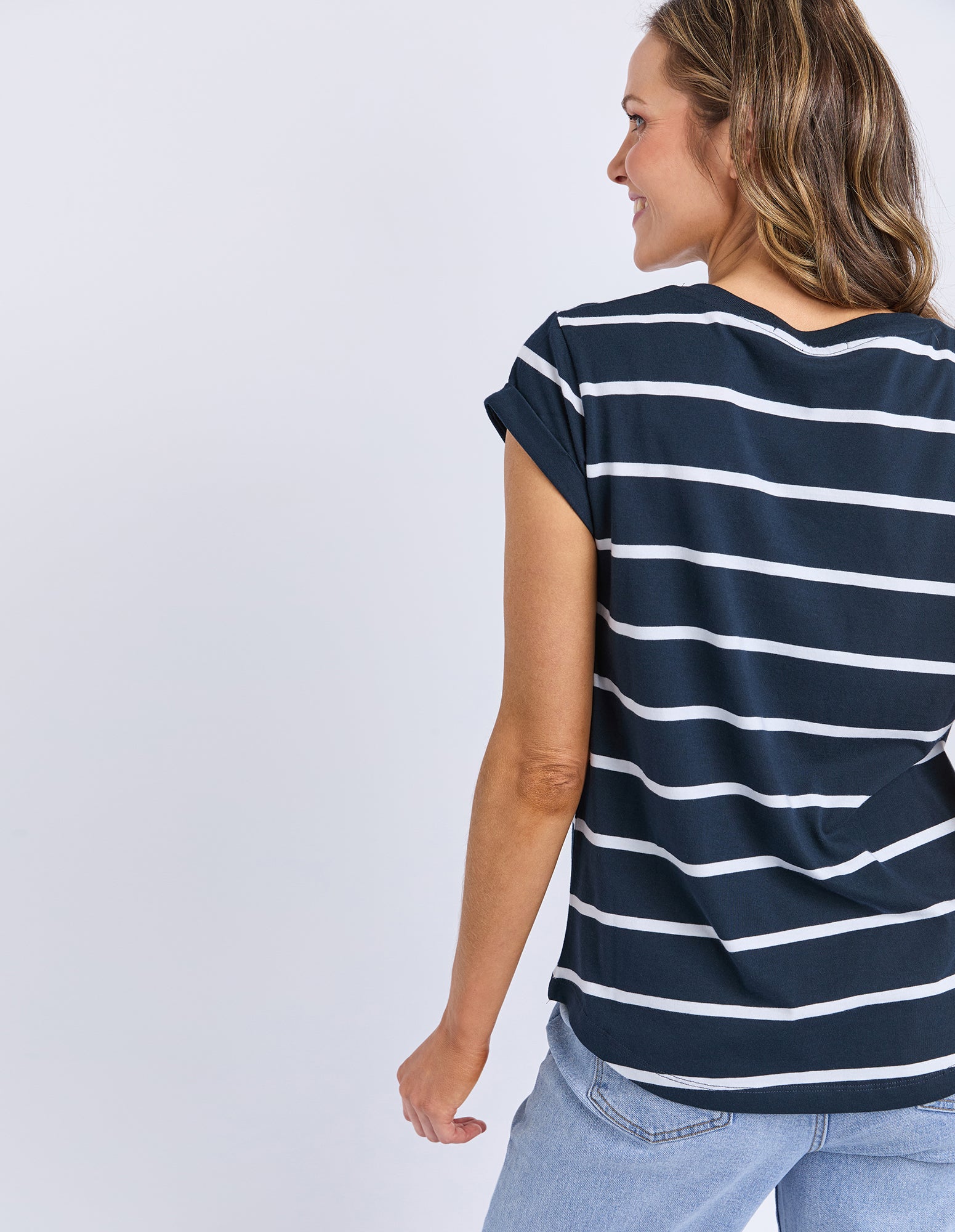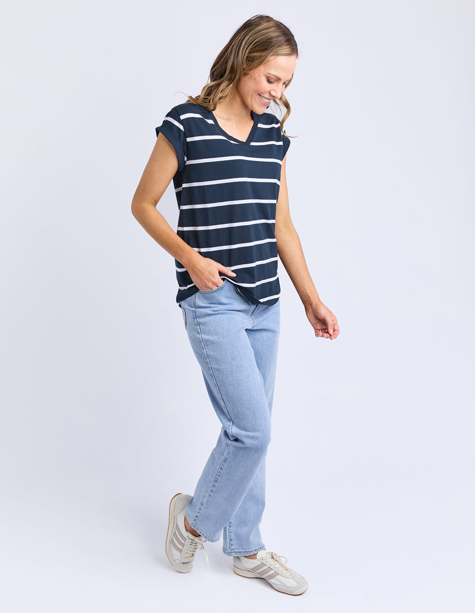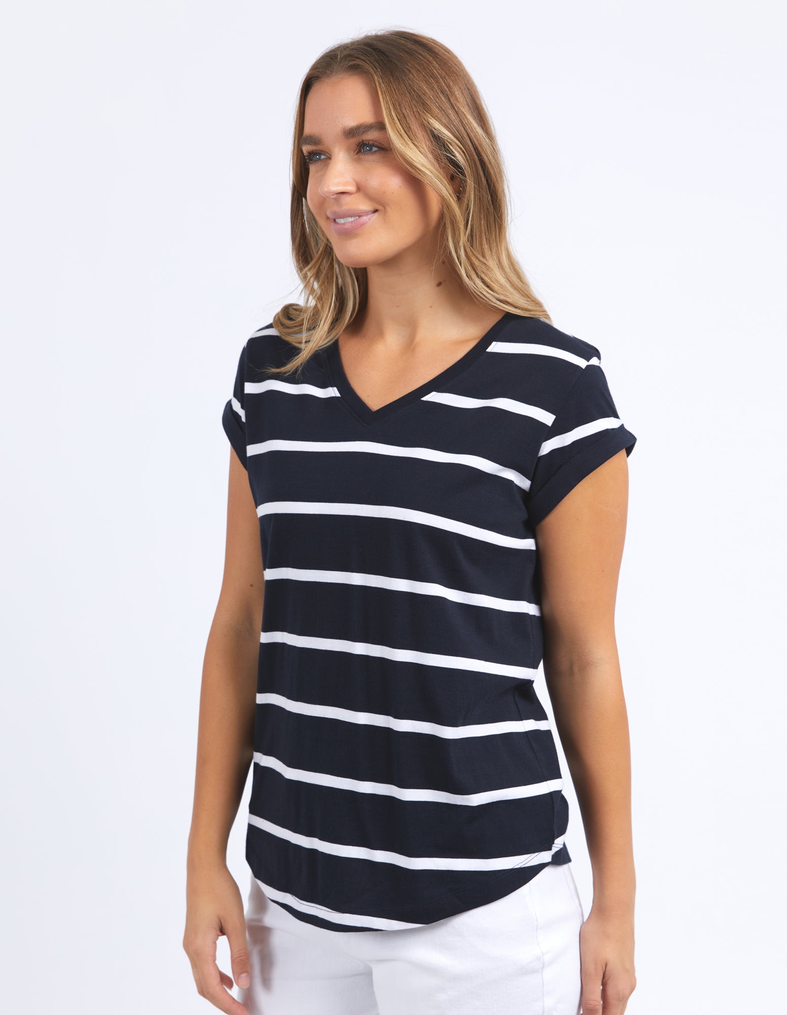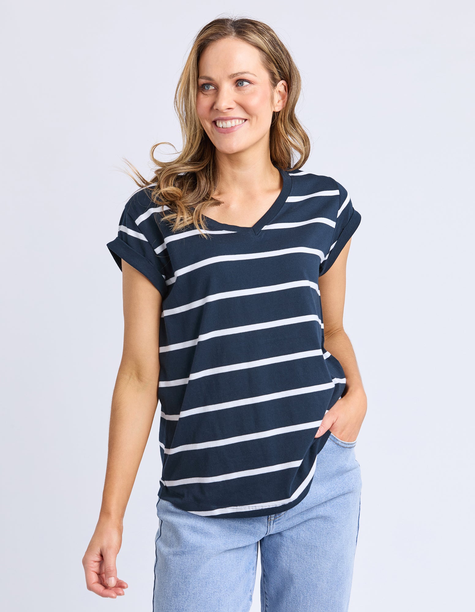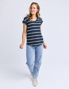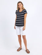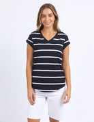 Manly Stripe Vee Tee Dark Sapphire/ White
