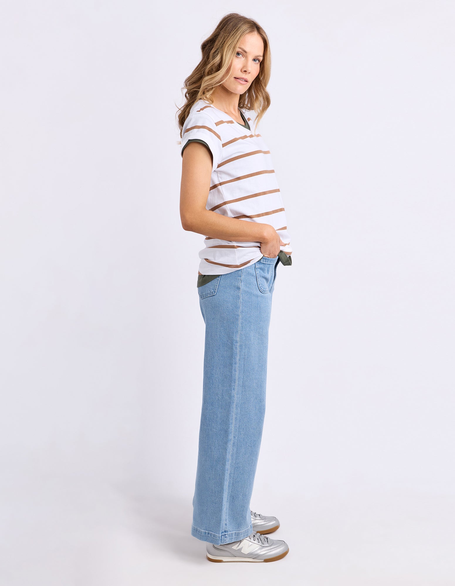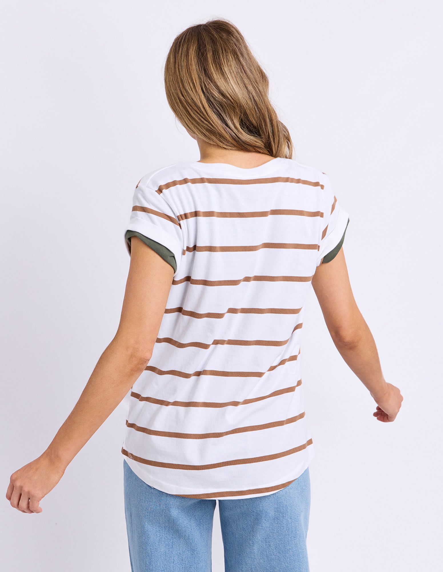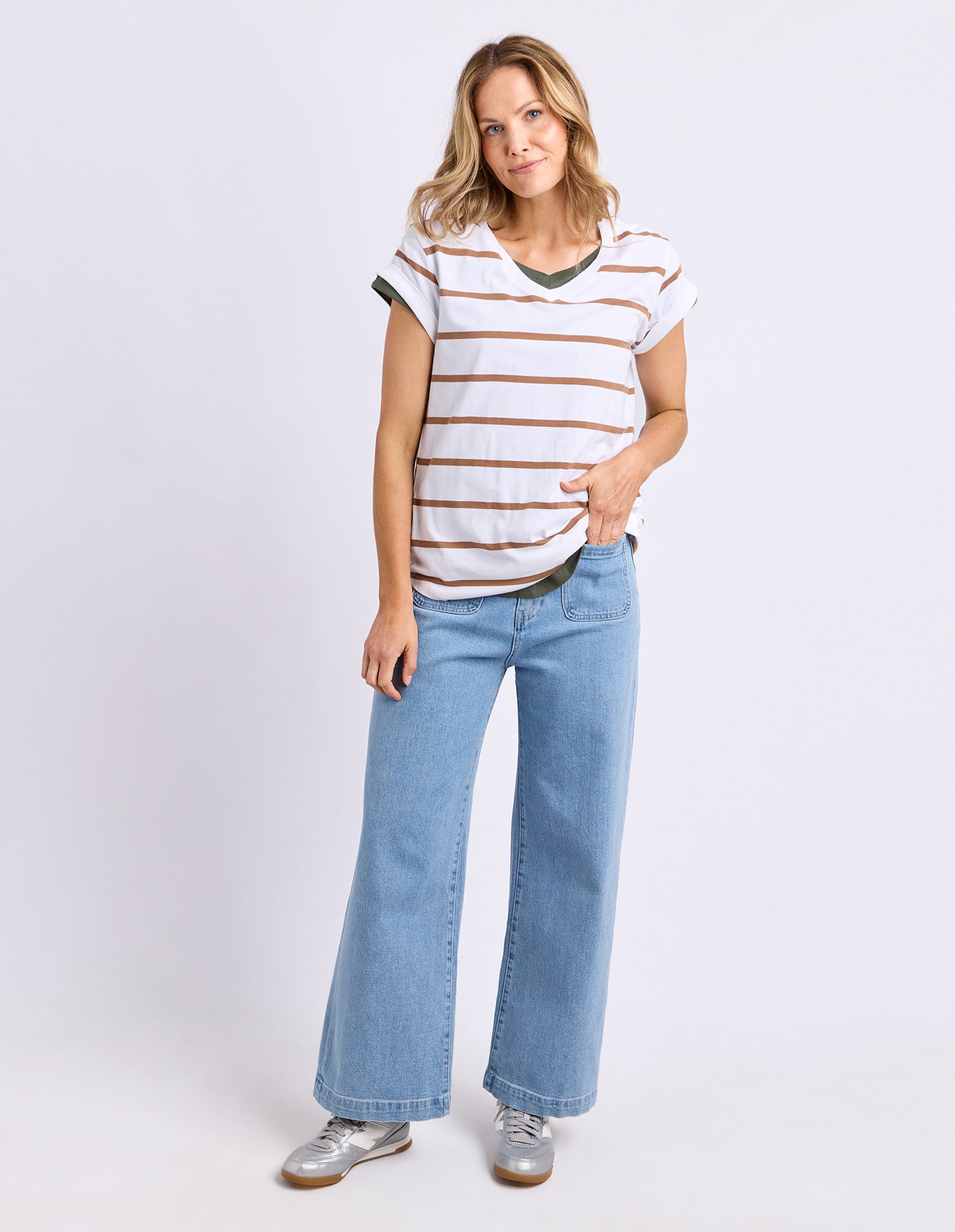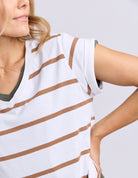 Manly Stripe Vee Tee White/Toasted Coconut