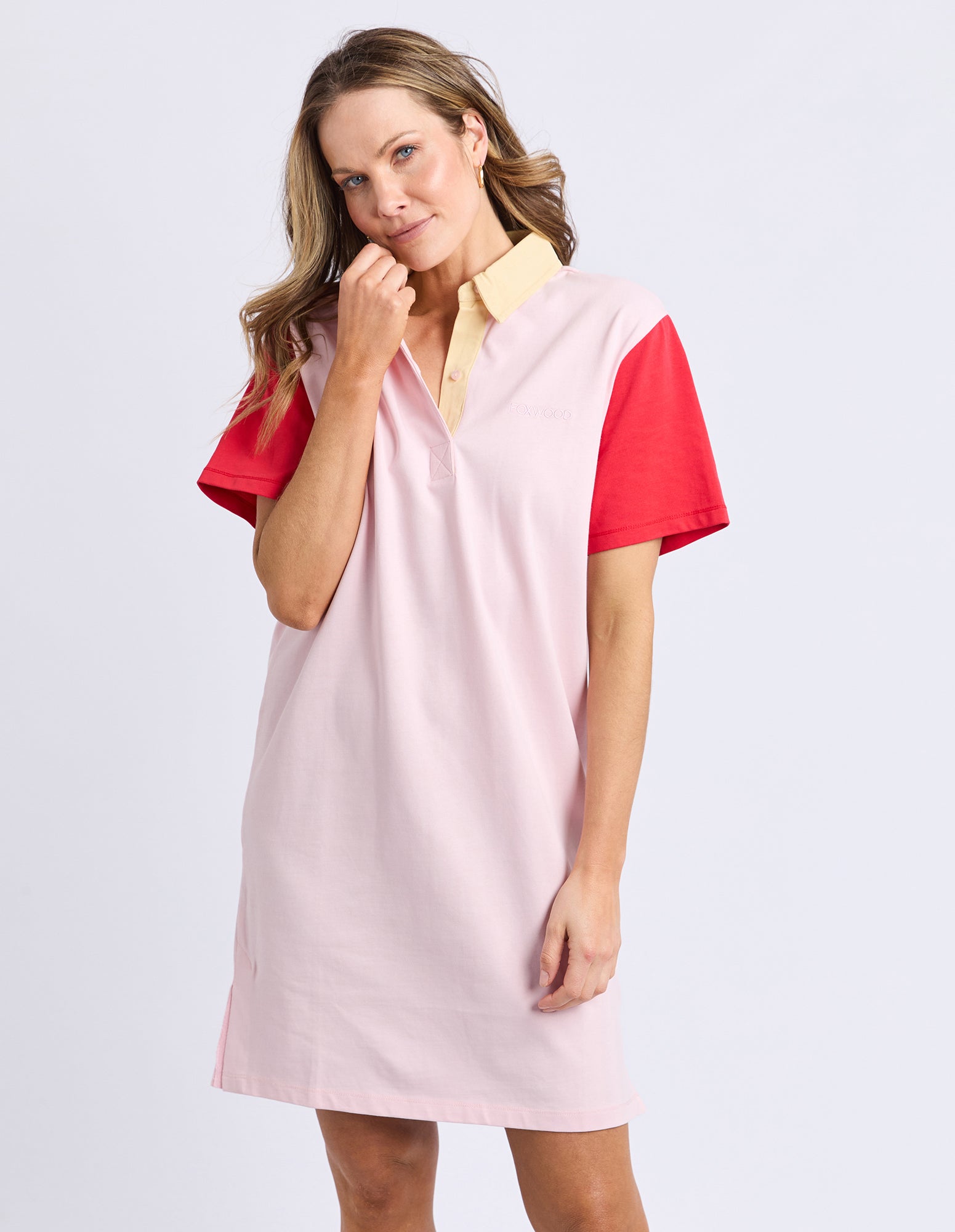 Elevate your casual wardrobe with the Mixed Rugby Dress . Featuring a classic collared neckline and bold contrasting sleeves, this dress blends sporty charm with feminine flair. Its relaxed fit ensures comfortable all-day wear, perfect for weekend outings or laid-back gatherings.