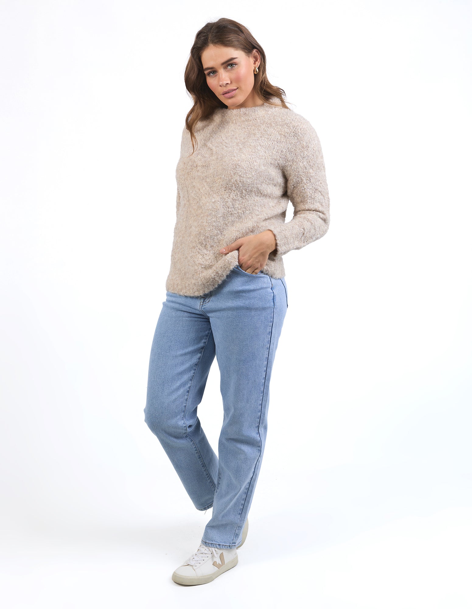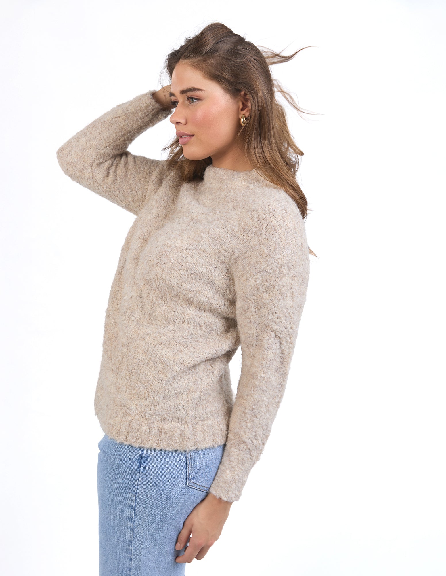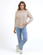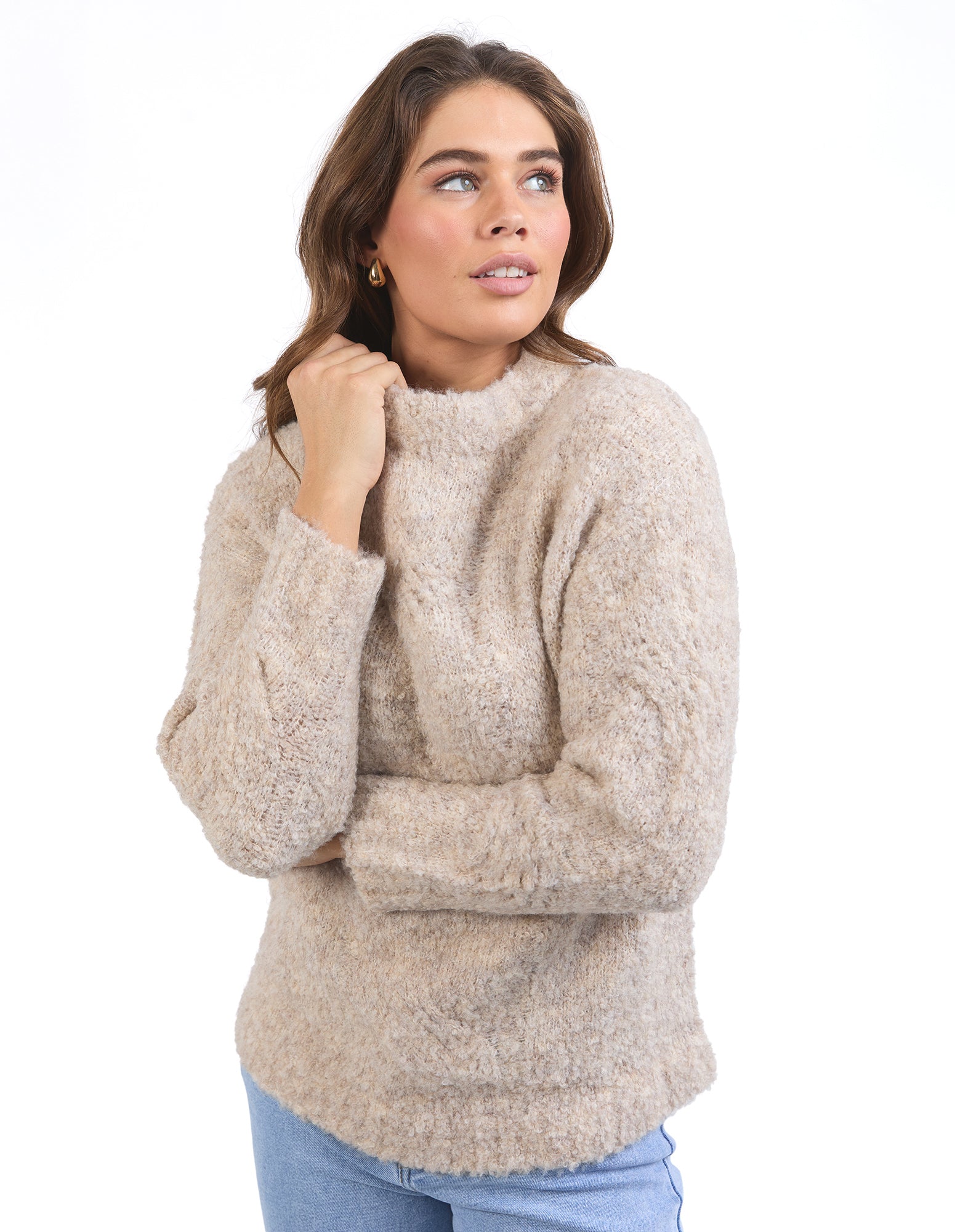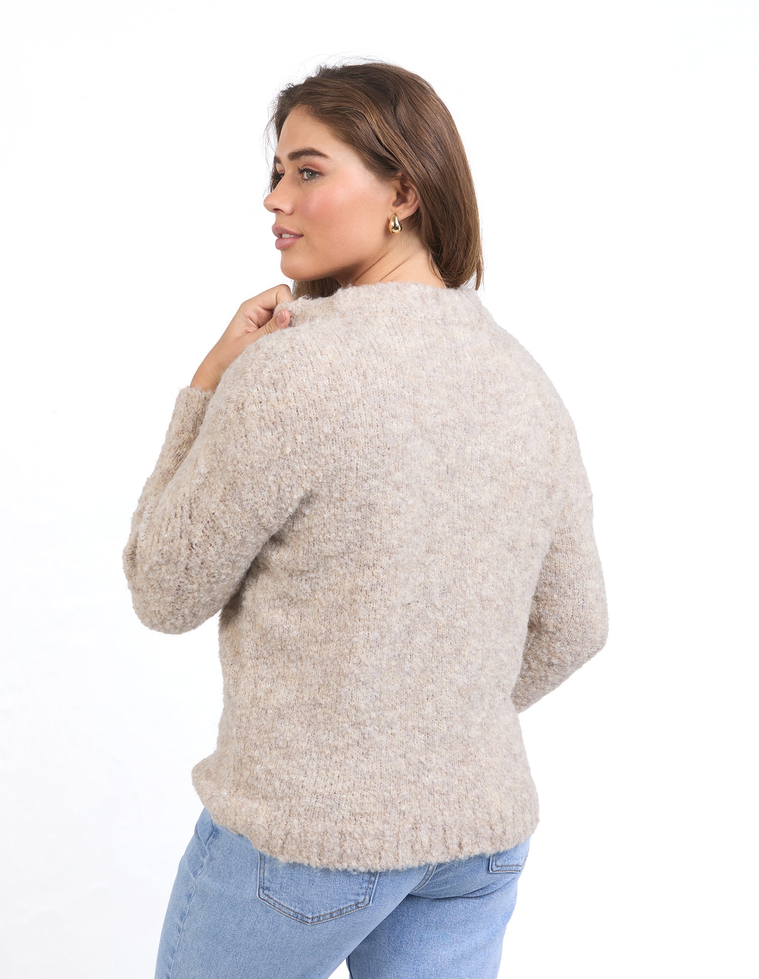 The Monnet Knit Crew brings a little extra cozy charm to your wardrobe! With front body and sleeve cable detailing, plus a chic mock neck, this relaxed-fit knit is perfect for layering or wearing solo. Effortless style, maximum comfort—this crew is made for those days when you want to look put-together but feel like you're wrapped in warmth.