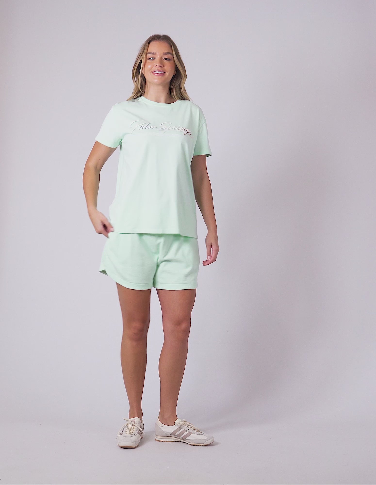 The Palm Springs Tee captures the relaxed mood of summer days. Crafted from soft 100% cotton, it features an exclusive Foxwood front chest print with a fresh pastel design. The round neckline and relaxed fit make it a comfortable go-to for casual styling.