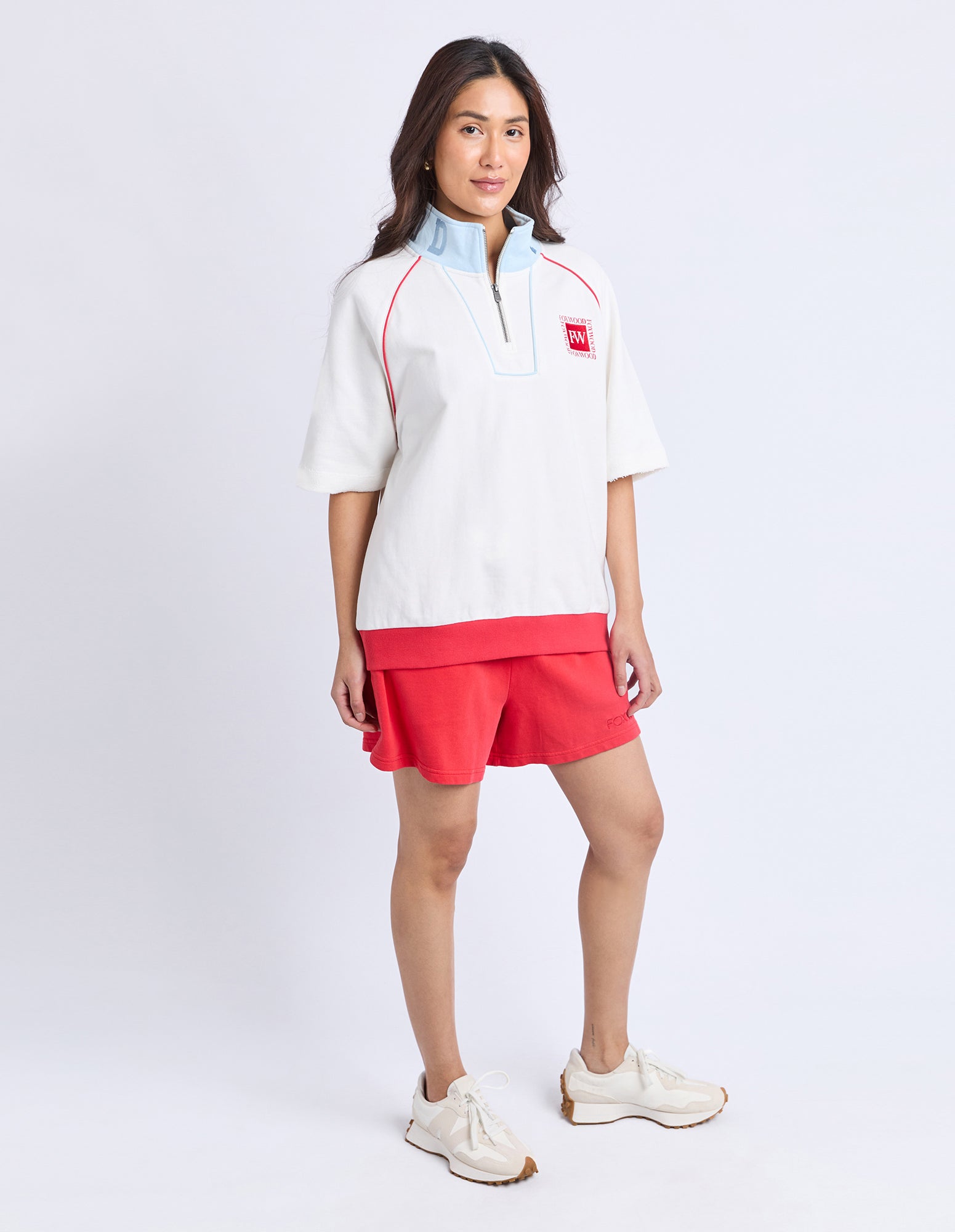 Piped Zip Crew Vintage White