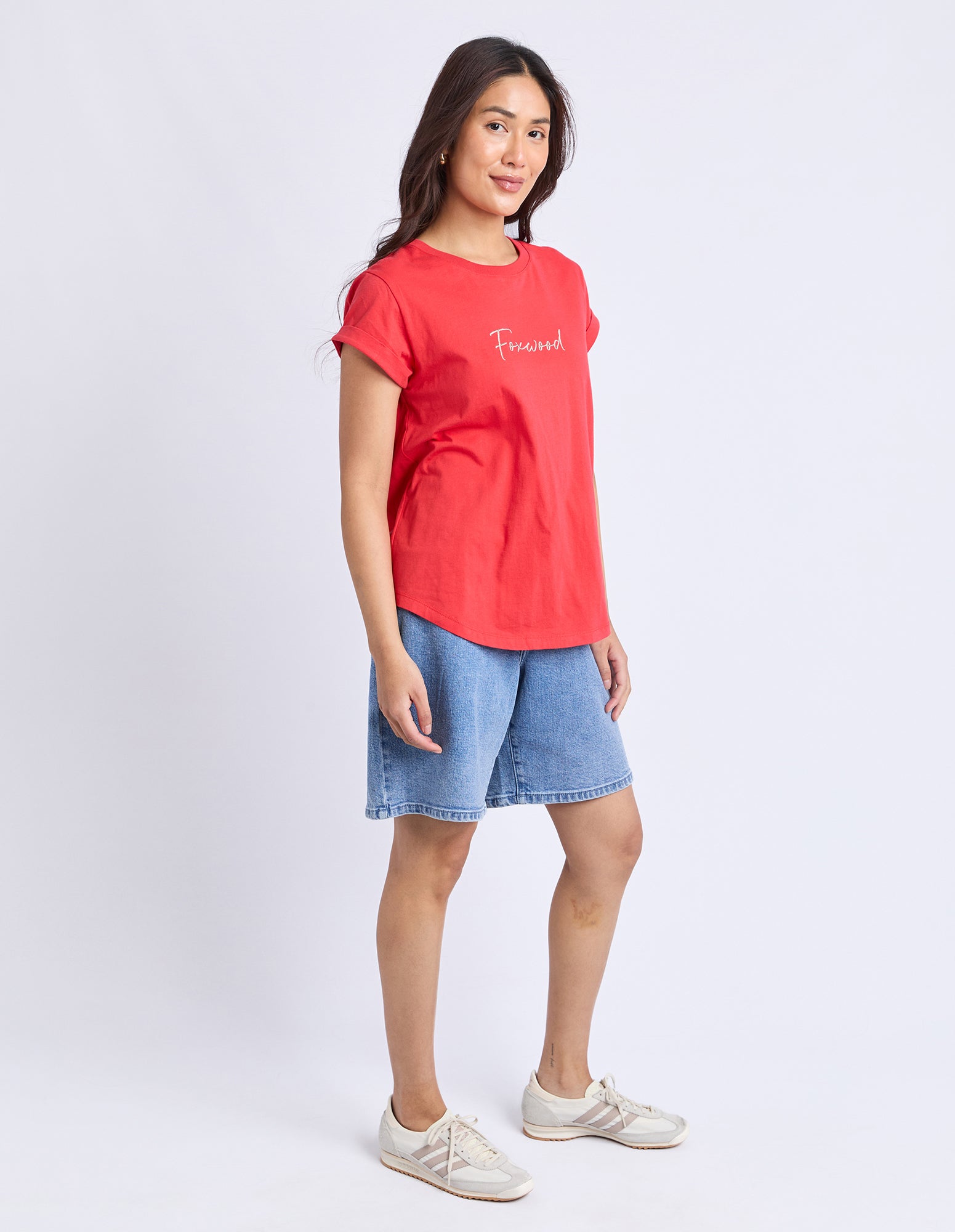 A spin on our Signature Tee! For classic Foxwood style the contrasting artwork is embroidered and the tshirt features a rolled cuff sleeve and curved hemline.