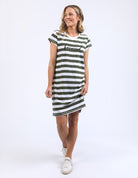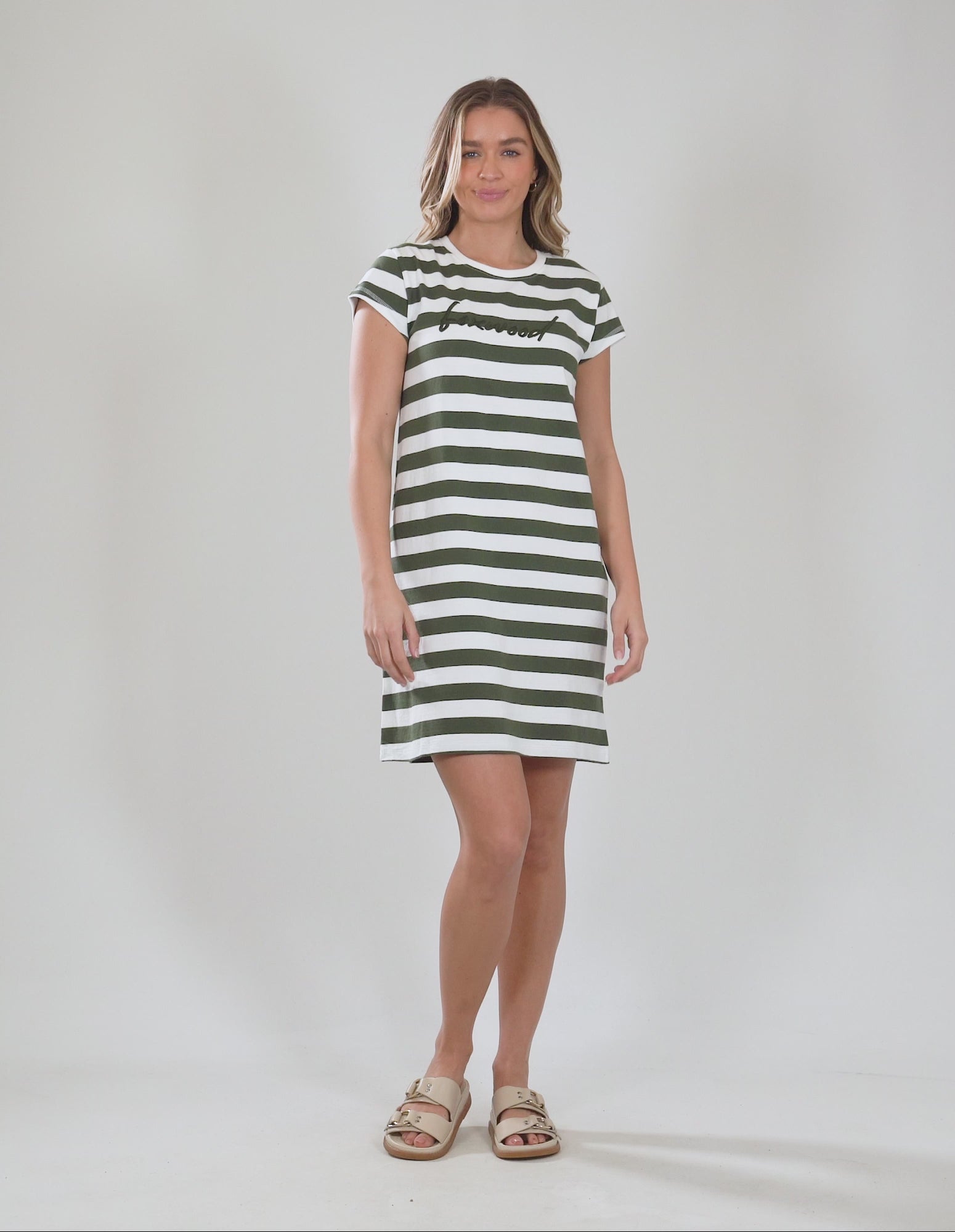 Cute Tee Dress in a light weight vintage washed 100% cotton jersey topped off with a Foxwood Signature logo on the chest. Great for everyday wear!