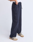 Designed for effortless style, the South Pant is made from breathable linen for ultimate comfort. These black slacks feature an elastic waist with a drawcord for a customizable fit, along with side pockets and subtle side detailing.